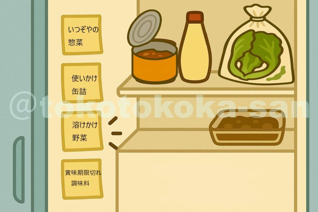 そして、冷蔵庫の見ないふりしてたいつぞやの惣菜と、使いかけの缶詰、袋の中で半分溶けてるレタス(?)を処分する。