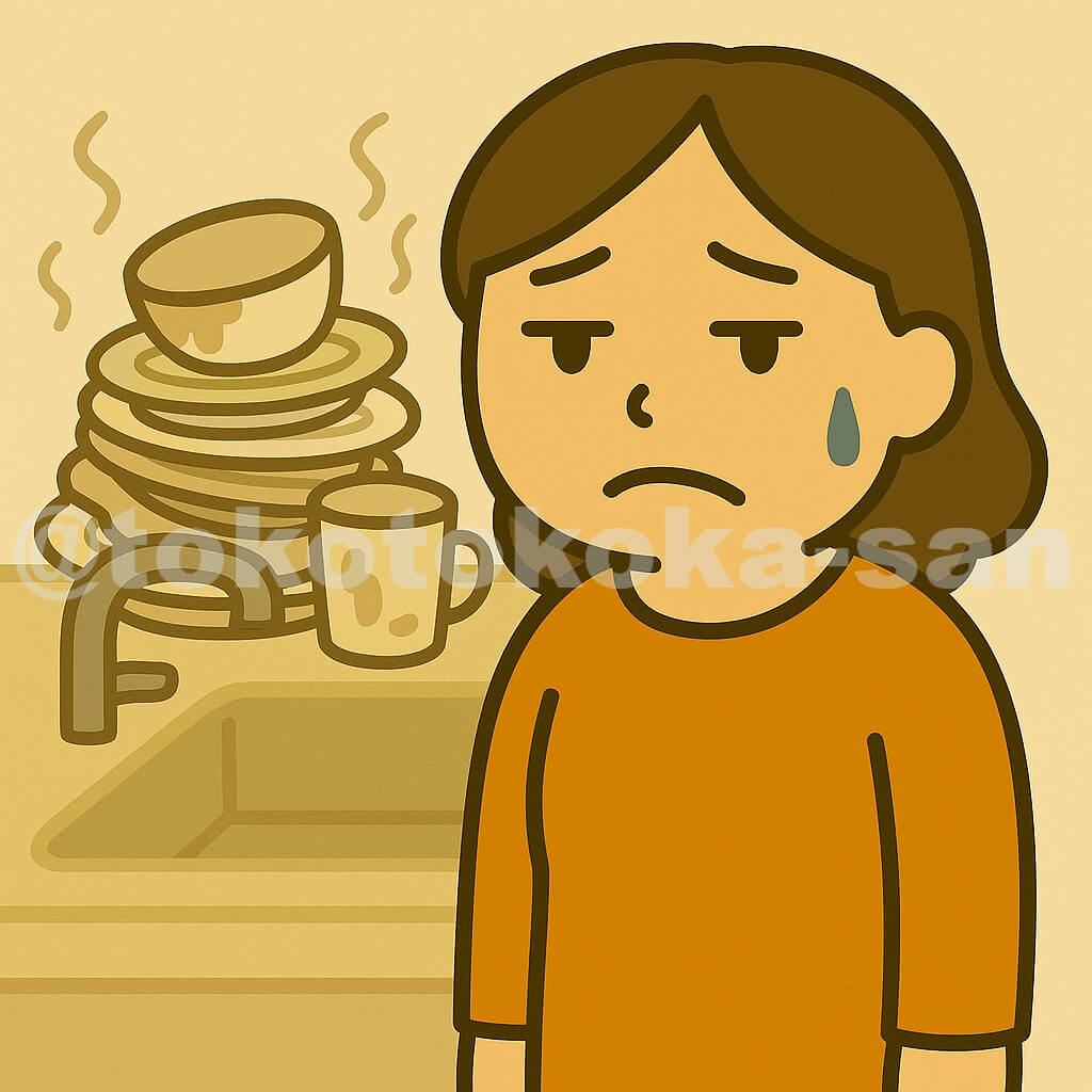 家に戻ると朝食時のお皿でいっぱいのシンク…