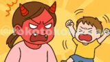 青ざめた私。まさか、それ持って布団で寝たのか!?1~3番目のお子もその様子にビビる。